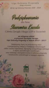 Dzisiejszy dzień jest dla mnie szczególny, ponieważ mija dwadzieścia lat mojej działalności we władzach Ligi Ochrony Przyrody. Od nowogardzkiej prezesury – poprzez Zarząd Okręgu LOP w Szczecinie – do pracy w Zarządzie Głównym LOP w Warszawie. 12 września w Szczecinie odbyły się wybory władz Zarządu Okręgu na następną 5-letnią kadencję. Dziękuję za zaufanie i cieszę się, że przez kolejne lata będę mógł współpracować z ludźmi oddanymi ochronie przyrody.